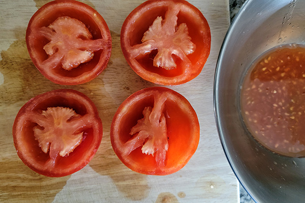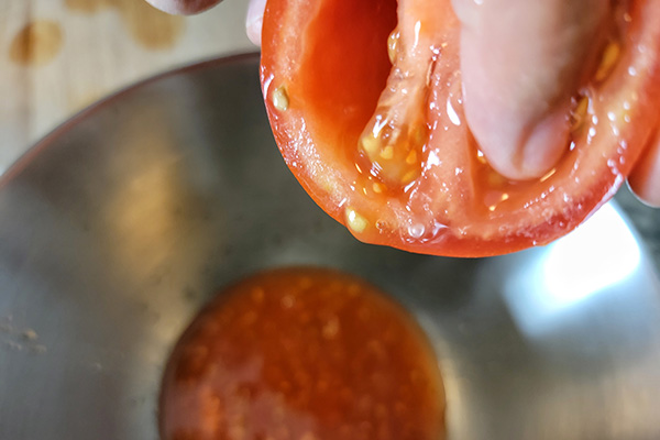 For this recipe, I prefer not having too much juice from the tomatoes. So I slice slice them in half and remove the seeds then dice them. Don’t worry! You don’t need to discard the removed seeds/juice. You can save and store in the fridge (or freezer) then use it for making soups, pasta sauce, or stir-fry later.
