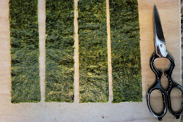 I take my favorite sushi nori sheet then cut & shred with my kitchen scissors.