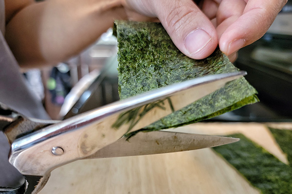 When it comes to nori seaweed, I’m all about the quality and I always look for the one from Japan. Same thing for the kizaminori but it’s not as easy as to find the sushi nori sheet. So here is what I do is instead of buying mediocre kizaminori.