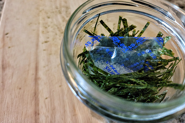 Since I use it often, I make enough to fill up my empty glass container, then put the silica gel packet that comes with the nori seaweed to the container to keep the moisture out. It works!