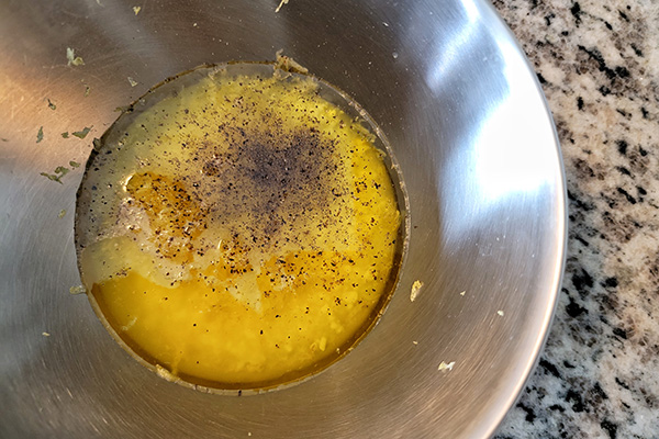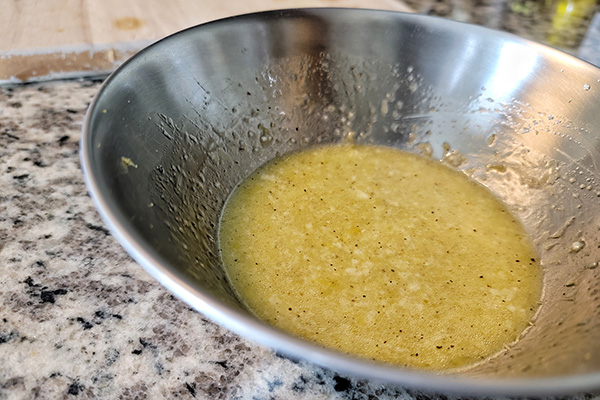 - Meanwhile, prepare the dressing. In a large prep bowl, combine shio koji, lemon zest, lemon juice, extra virgin olive oil, and black pepper. Whisk together until well incorporated. Set aside.