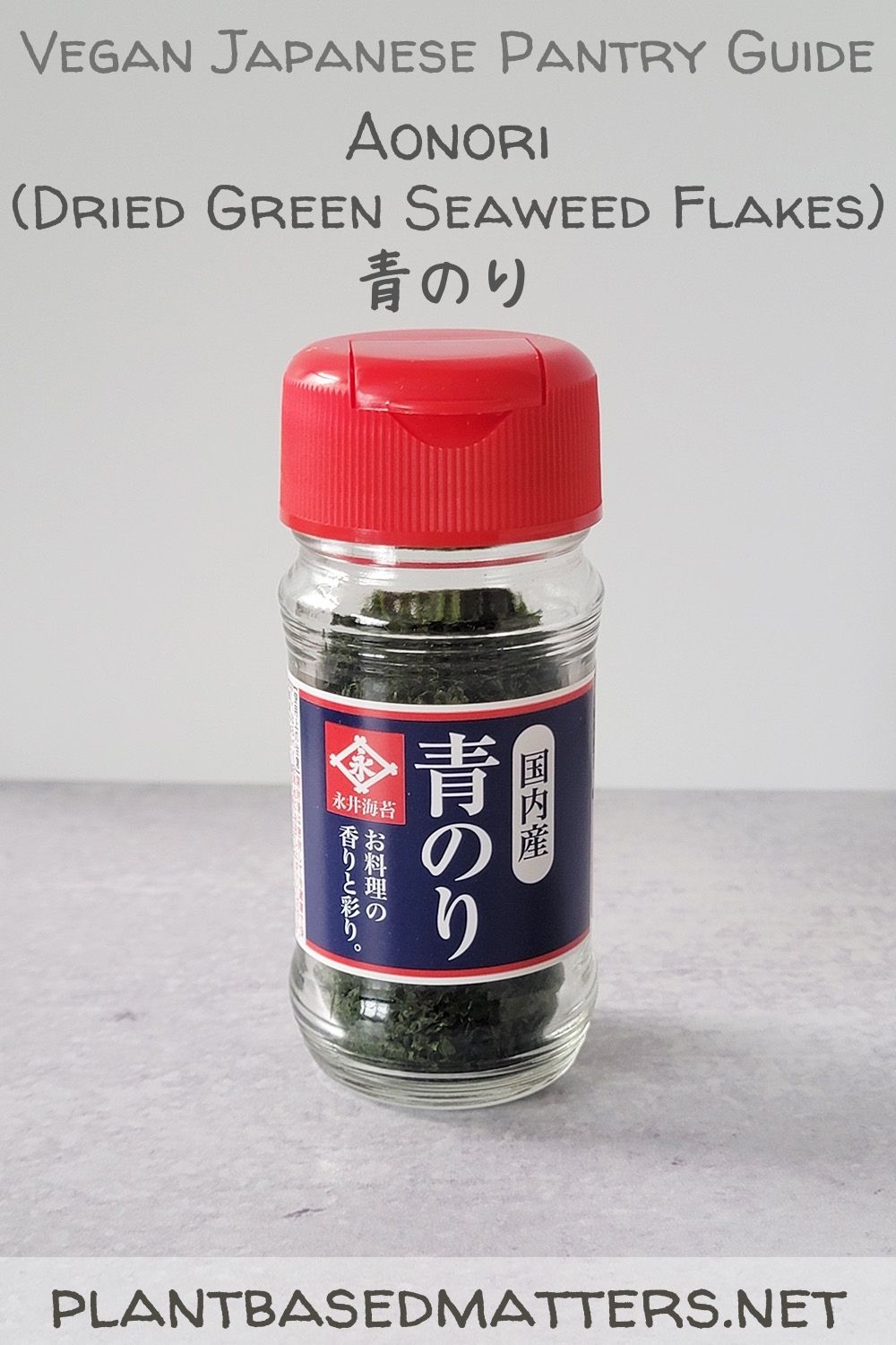 Aonori is Japanese dried green seaweed flakes that you may have seen on top of okonomiyaki (Japanese savory pancakes) and yakisoba (Japanese stir-fried noodles.) It’s naturally vegan, low in calories and rich in nutrients such as minerals and vitamins. Aonori should be one of the top ten must have items to add in your vegan Japanese pantry!