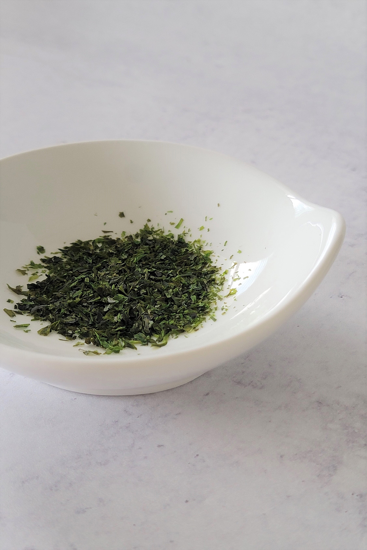 Aonori [青のり / 青海苔 / あおのり] is a type of seaweed which in English, it’s often described as edible green laver or green algae. It’s typically processed into dried fine flakes.