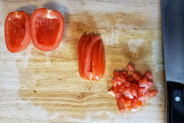 - 2 pcs (6 oz) Roma tomatoes removed the core and diced small (3/4 cup diced)