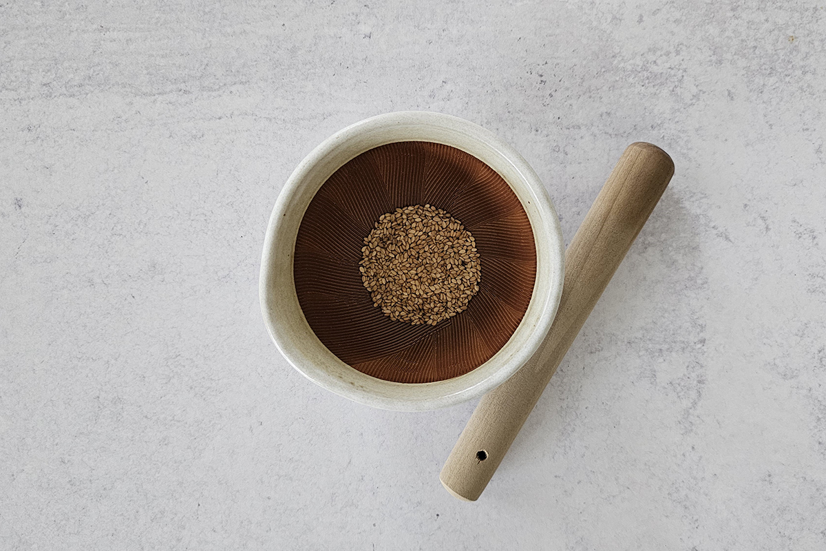 - Use Japanese mortar and pestle to grind toasted sesame seeds for the best result.