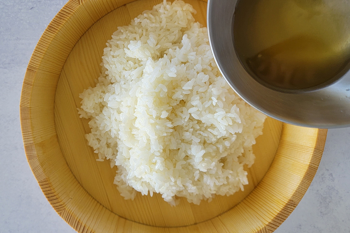 1. First, prepare Sumeshi (vinegared sushi rice) using my recipe. Alternatively, use your favorite go-to vinegared sushi rice recipe.
