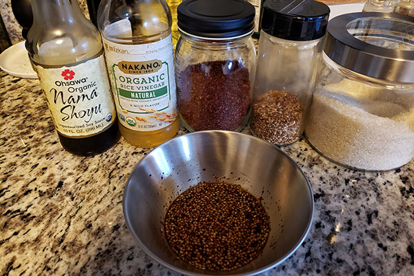 - Soy Sauce: Ohsawa Organic Nama Shoyu from Gold Mine Natural Foods.