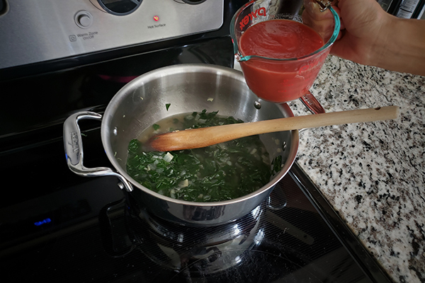 I love the taste & texture of dinosaur kale which is what I used for this recipe. You are more than welcome to use regular kale or spinach. Any greens in the red color of tomato is pretty! Most importantly, you always want to incorporate some greens into every meal.