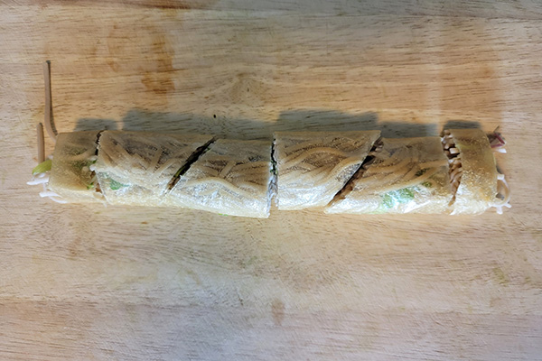 You can think of the same way as making sushi rolls. The only difference is that I didn’t even use a bamboo sushi rolling mat and it was fine! Here is how to use VEGHEET and roll.