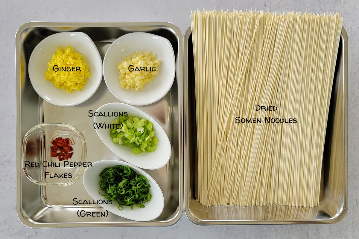 - In a medium to large sauce pan, start boiling water for cooking somen noodles.