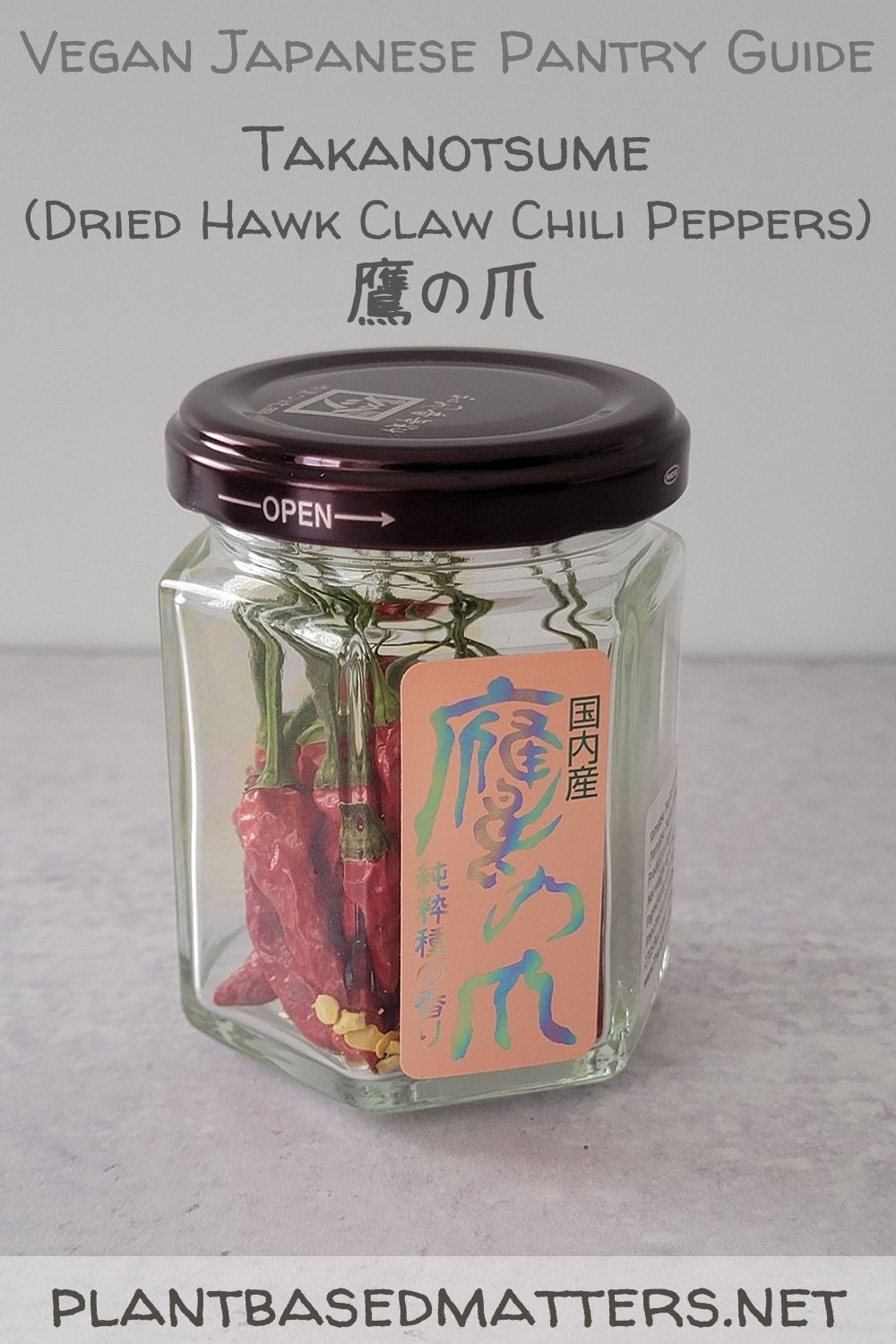 I recommend “real” Japanese takanotsume (dried hawk claw chili peppers) for you to stock up your authentic vegan Japanese pantry. This is a general tip for shopping Japanese groceries or pantry items which is to get the products that labels as “Product of Japan” on the back of the package. Often times, what appears to be a “Japanese” product is actually produced in another country. Always check the label!