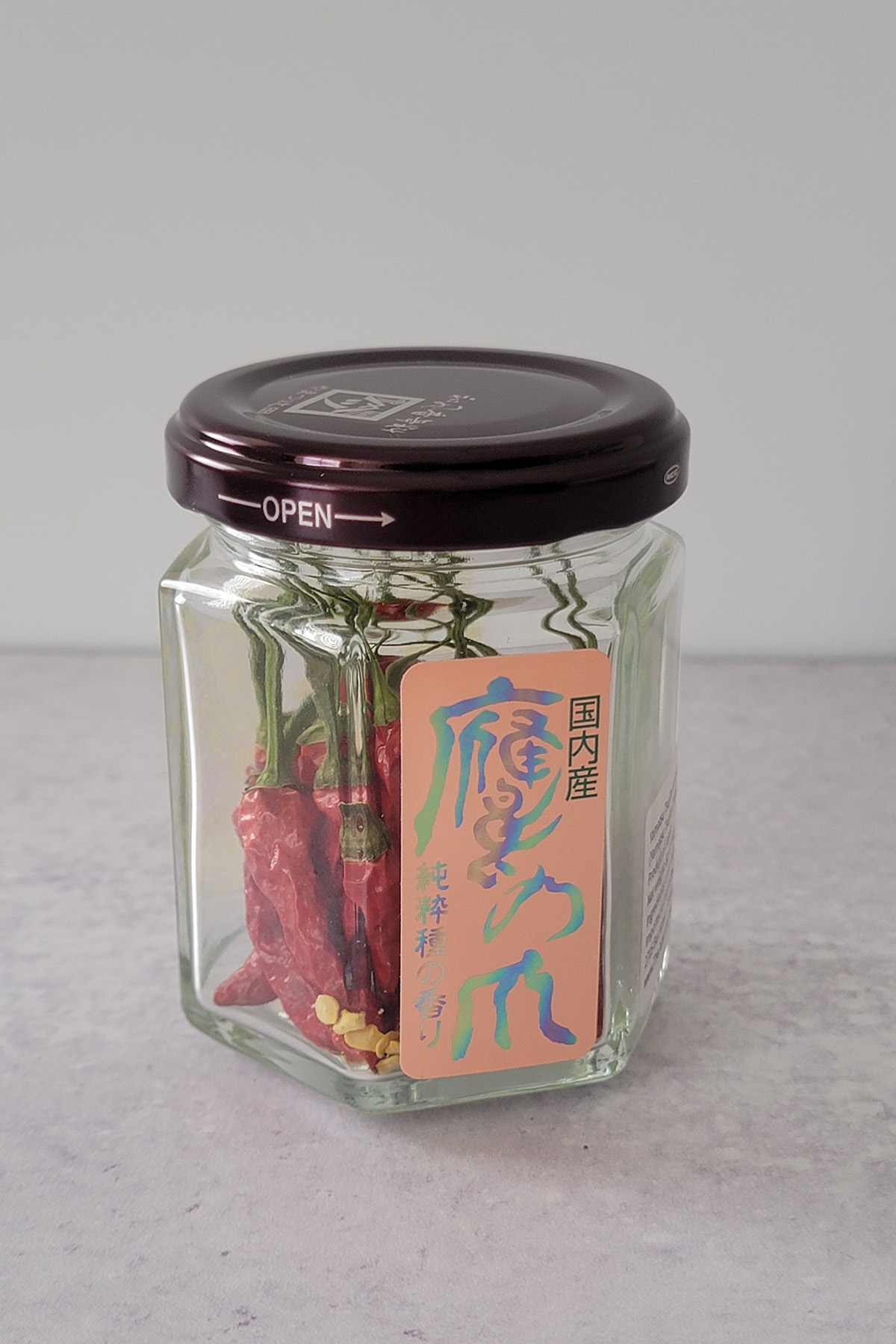 When you buy takanotsume pepper, it may come in a resealable zipper bag or a glass jar.