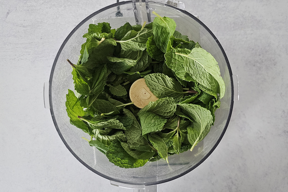 • In a food processor, combine cilantro and mint. Pulse until finely chopped. Scrape the side with a spatula if necessary.