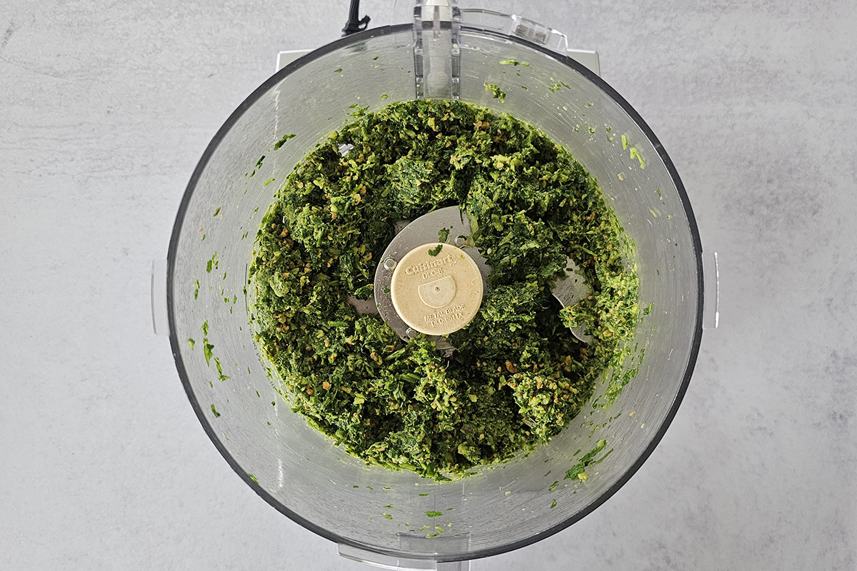 Pulse until finely chopped. Scrape the side with a spatula if necessary.