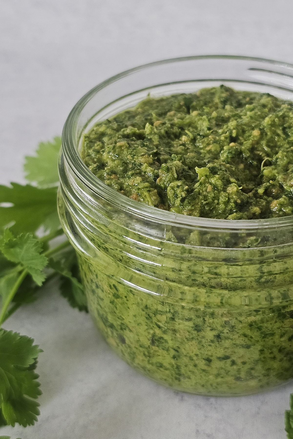 It’s far different from Italian pesto which has basil and pine nuts but the unique flavor of cilantro mint pesto is definitely a one of a kind that you would want to try!