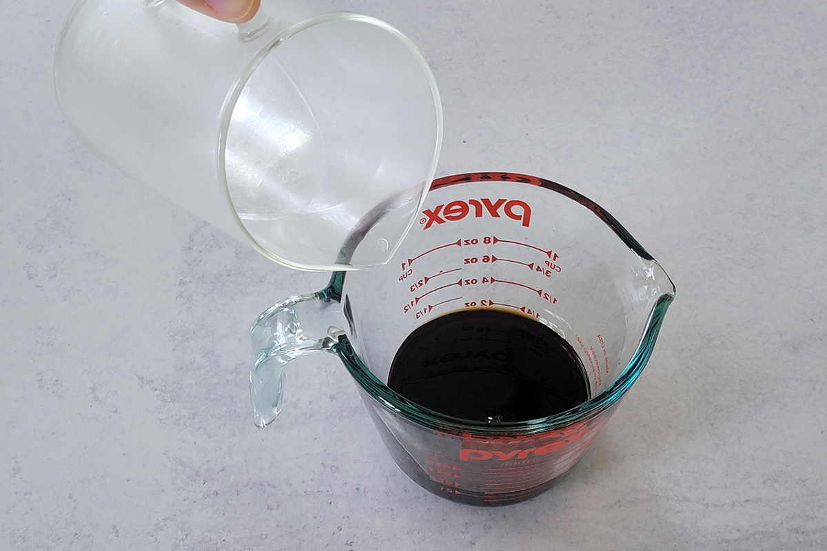 - For darker taste, combine 3 tbsp/45 ml mentsuyu with 3 tbsp/45 ml water. Mix well. [6.1 oz / 90 ml total per serving] --- 1-part mentsuyu to 1-part water