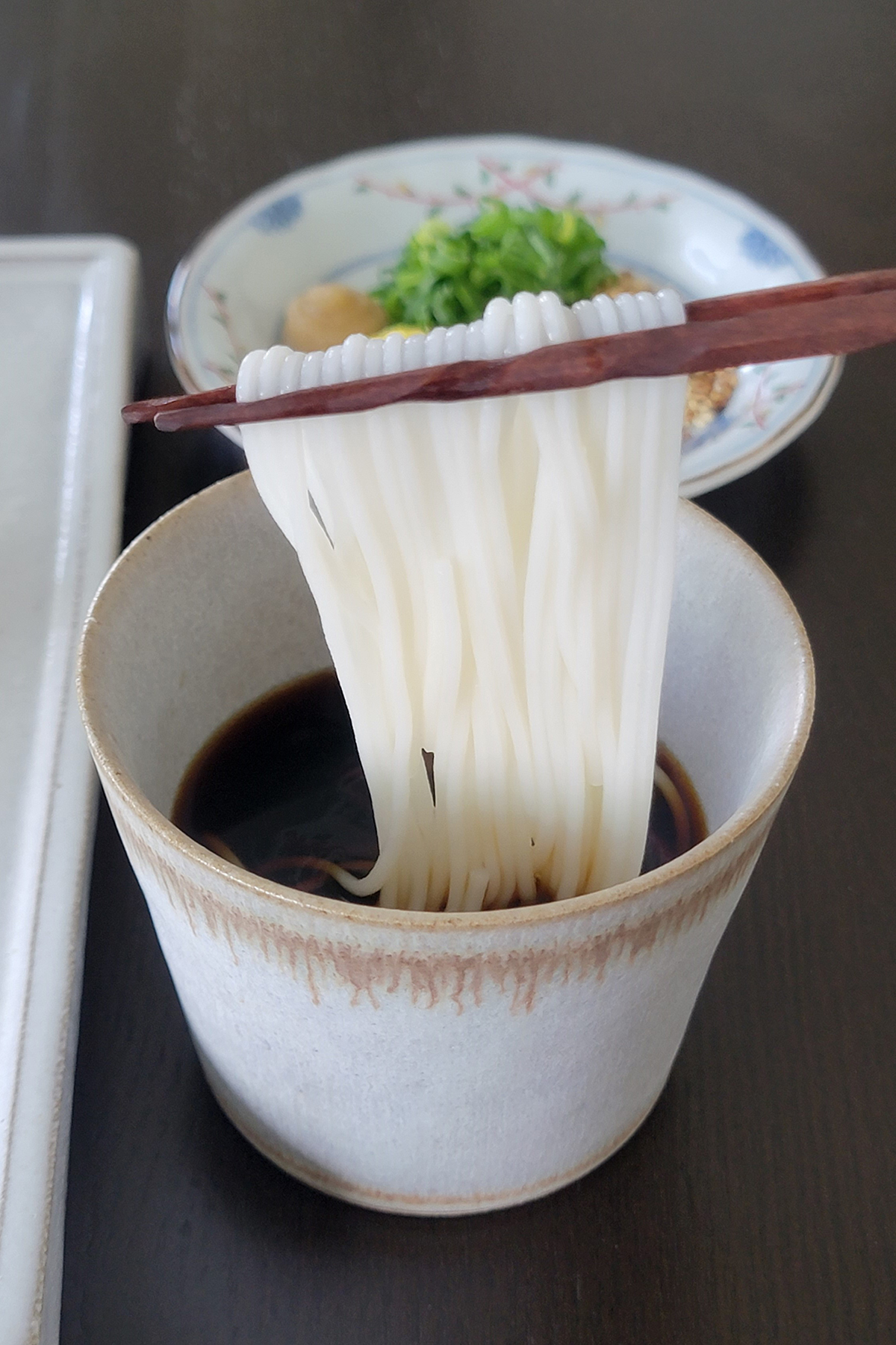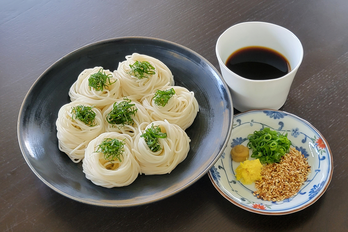 The thinness and the delicate texture of somen noodles are a great match with delicate soy sauce and kombu dashi-based dipping sauce.