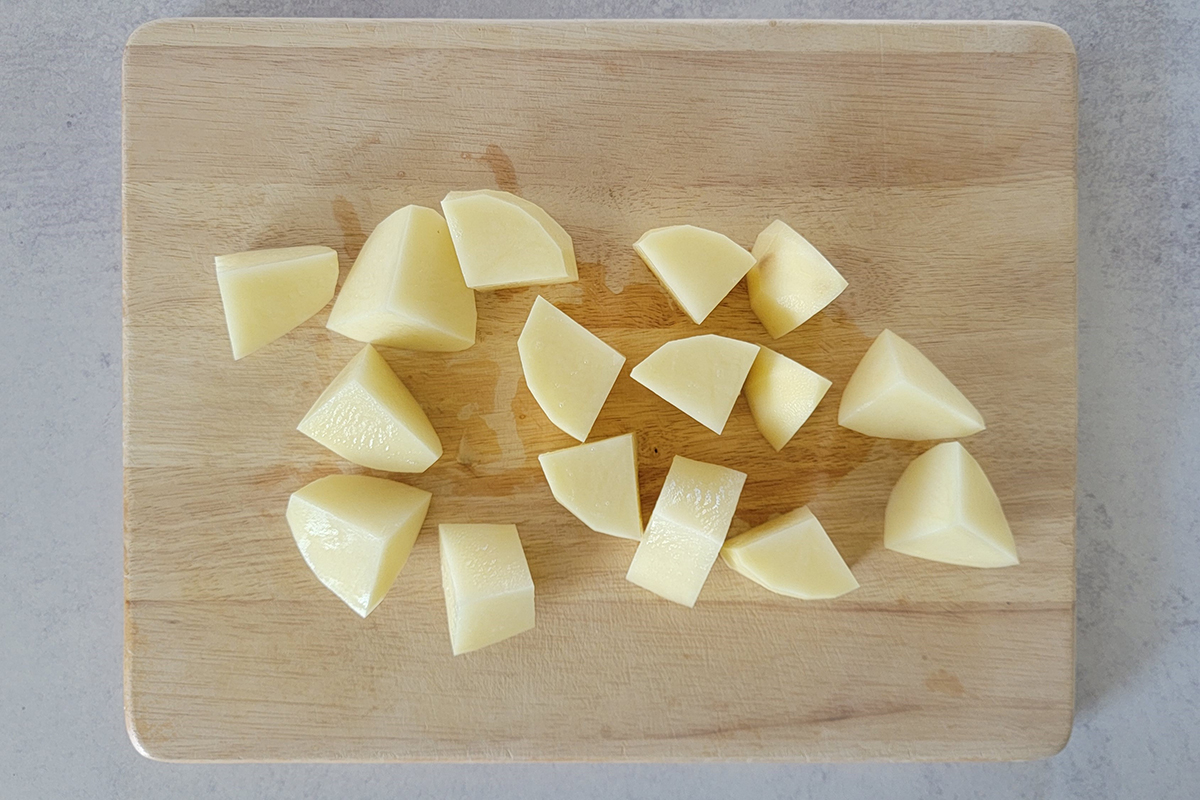 • Alternatively, you can boil them as whole then peeled after being cooked. This method takes longer but the potatoes may not get mushy.