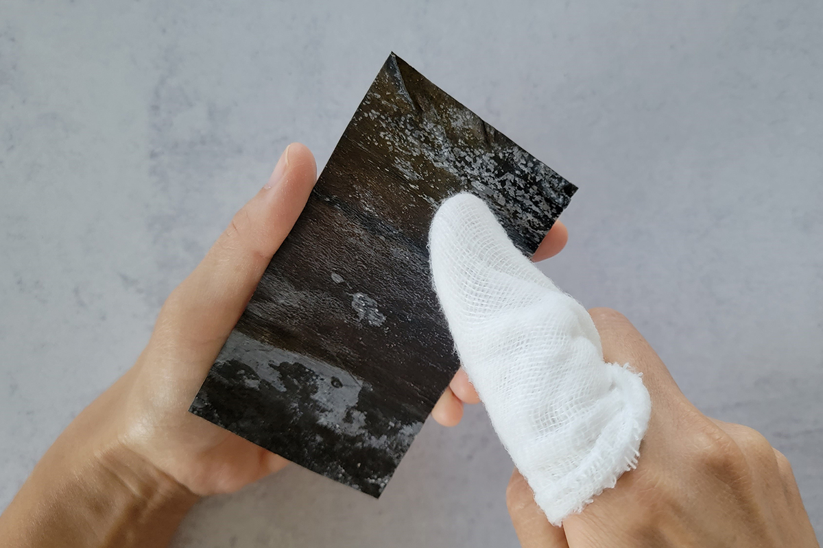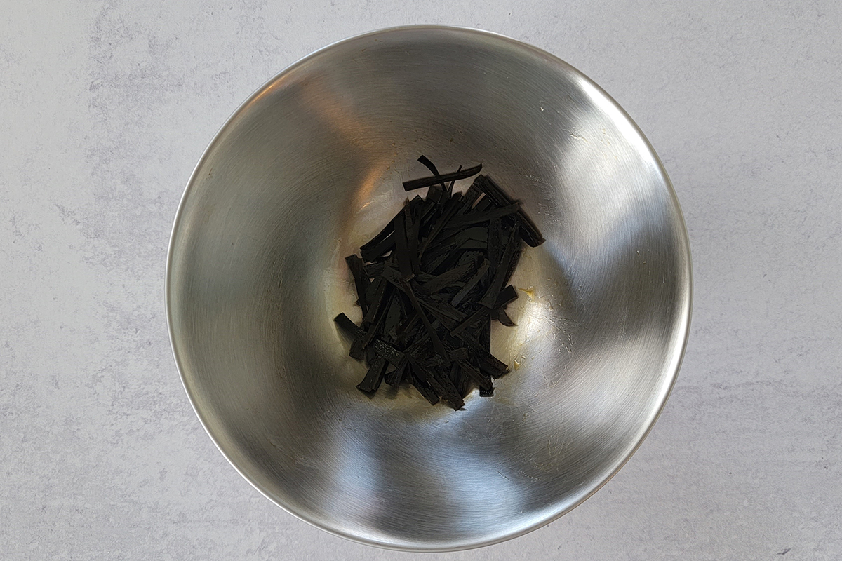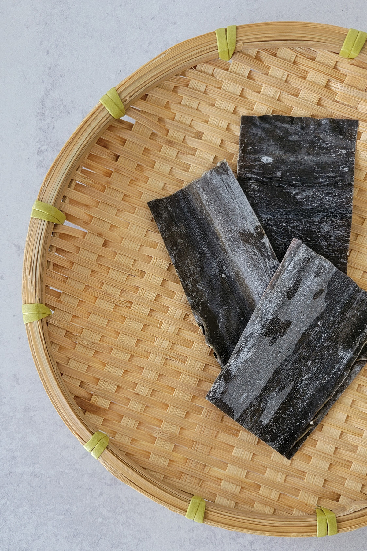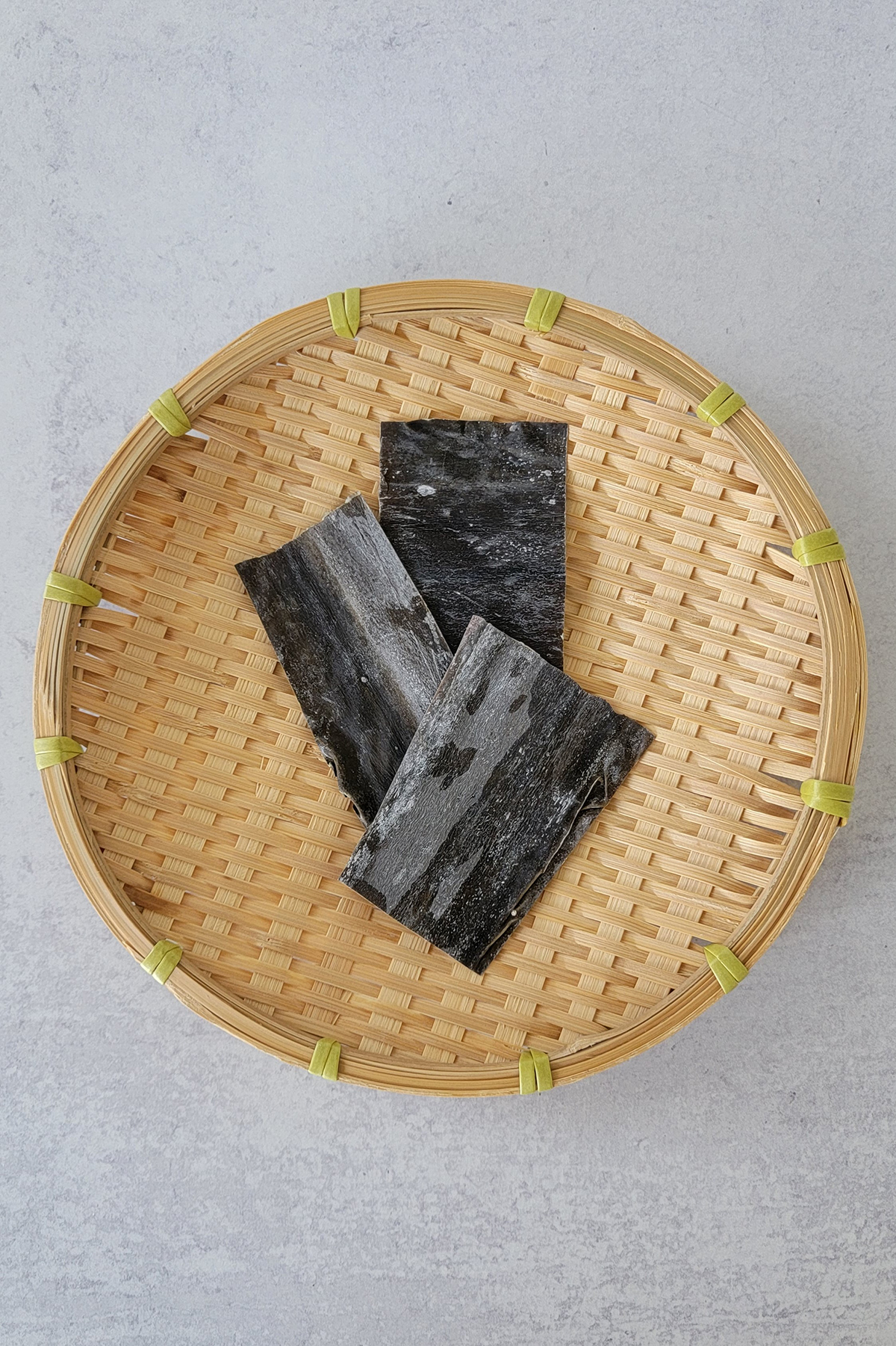 1. Gently wipe dried kombu sheet with a damp cloth.