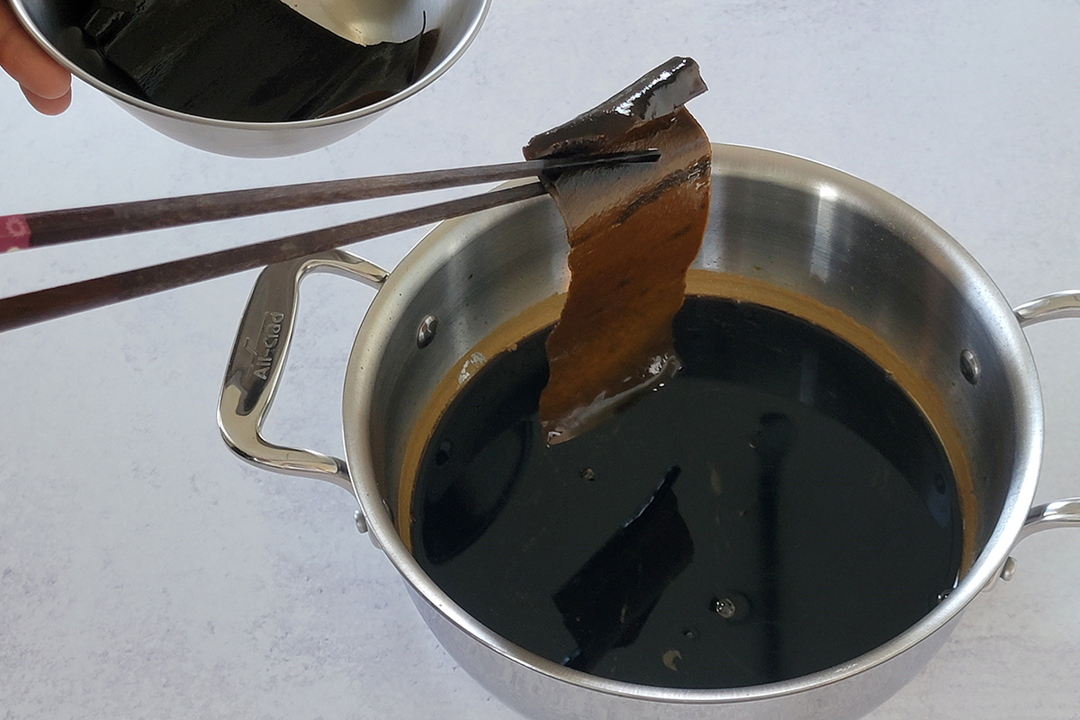 3. Remove the kombu and let it completely cool down (Tips: You could save the cooked kombu and repurpose for another dish.)