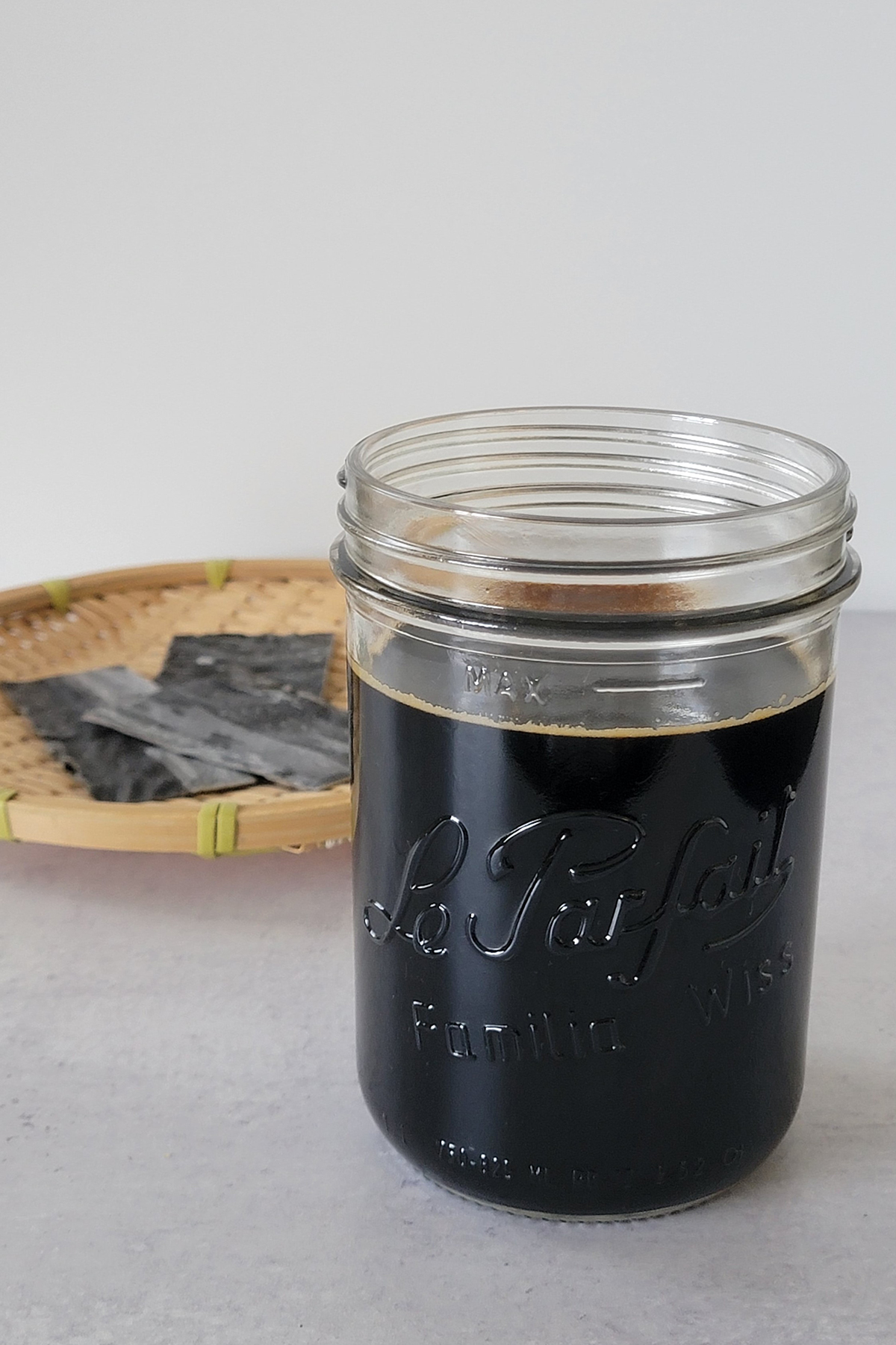 - Remove the kombu and let it completely cool down. (Tips: You can save the cooked kombu and repurpose for another dish.) Use right away or transfer to a clean container with a lid and keep refrigerated. See “How to Use” in the “Notes” below as the guide for how to make dipping sauce, broth and more.